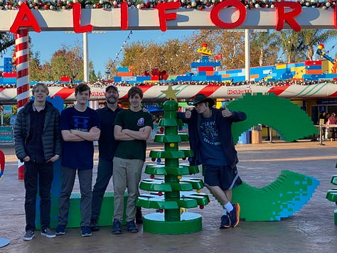 What I didn’t realize when that terrible moment arrived in our country is how much impact it would have on the acceleration of time in our own family. While we waited for the country to return to some kind of “normal”, my children became young men. In the background, I had the sense the country was on pause, but in the living room of my own home, there was no stopping the inevitable: my little boys were being replaced by fine young men. Covid also changed our pattern of going to California, and before I knew it, I had stockpiled up a bunch of weeks to use at our home resort. So this fall, I called my dad, and mom, and my sister and asked if they would want to go back and use up a few of the extra weeks I had. There was no hesitation, and we are all here, staring out at the great Pacific Ocean. Our minds are all filled with memories of our time here years ago, when our children had high, little voices that laughed and screamed with excitement. The kids have all outgrown Legoland, but they want to go back and see it. So do I.